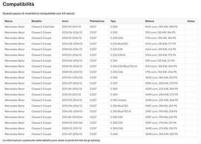 Coppia di Spazzole Tergicristalli MERCEDES Classe E Coupe, Cabriolet 1/09 a 4/13