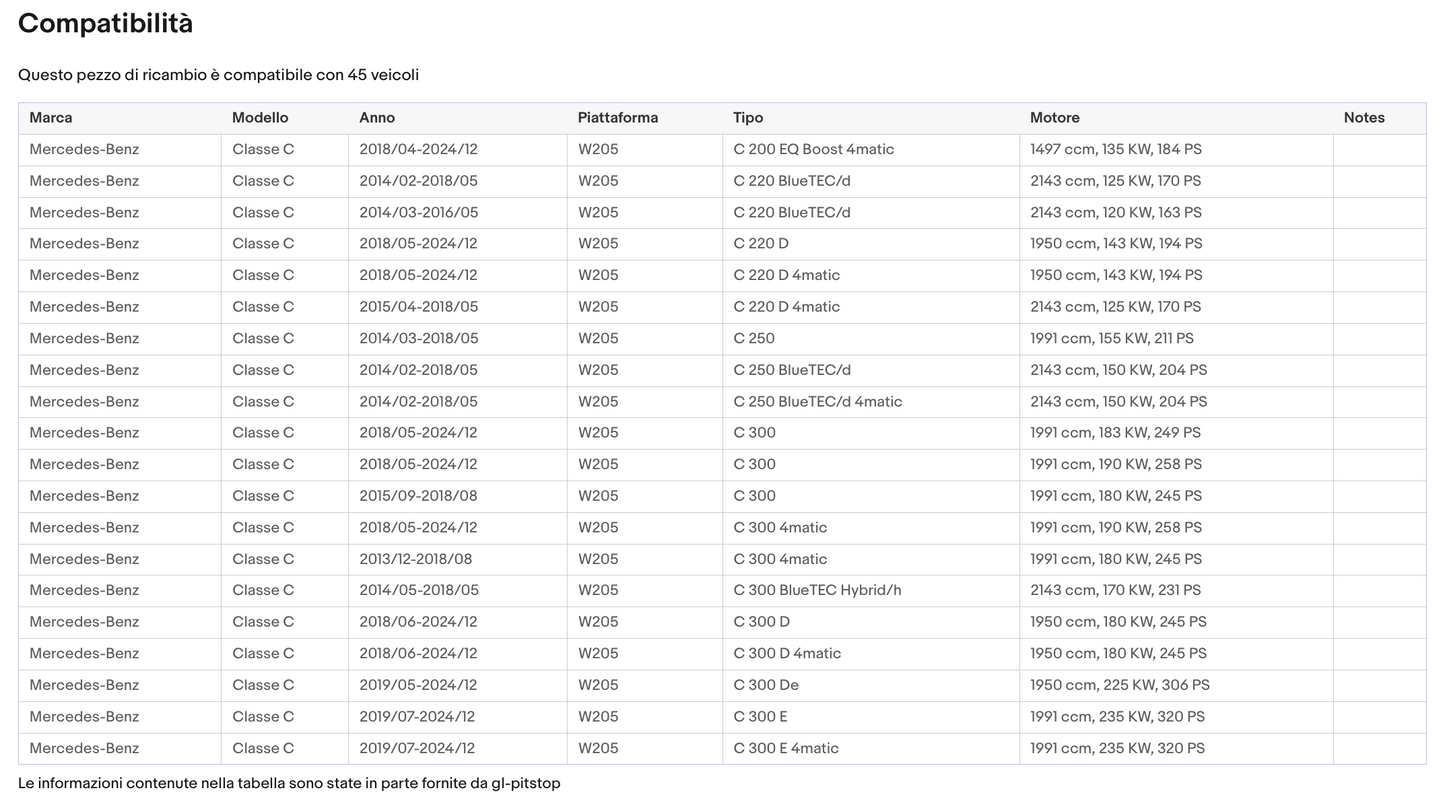 Coppia di Spazzole Tergicristalli per MERCEDES Classe C da 08/14