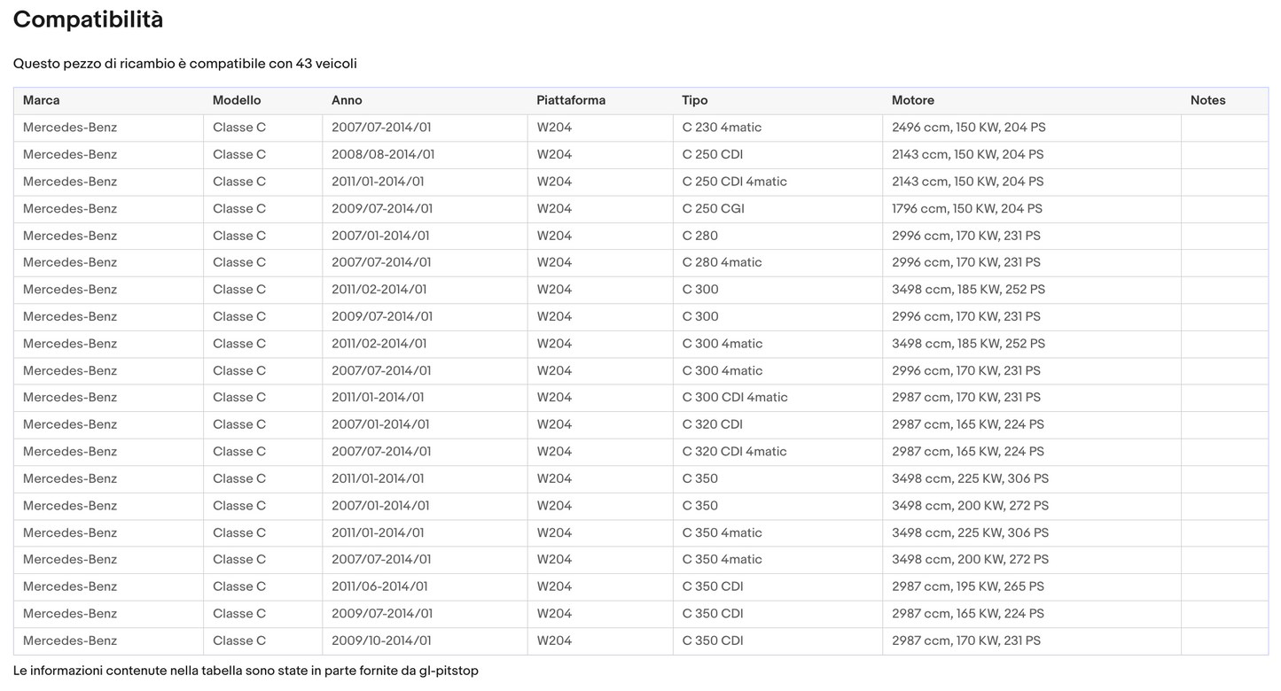 Coppia di Spazzole Tergicristalli per MERCEDES Classe C da 12/08 a 04/13