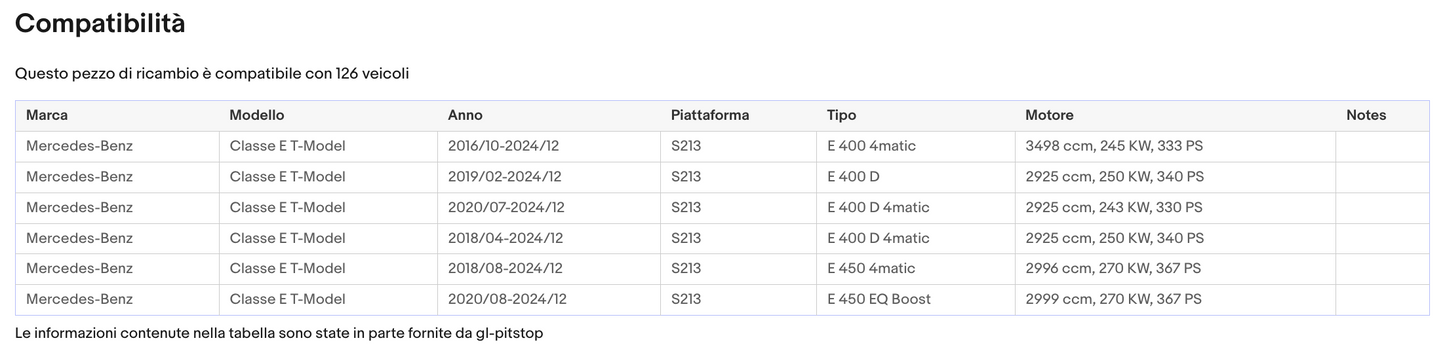 Coppia di Spazzole Tergicristalli per MERCEDES Classe E, Cabrio, Coupe da 01/16