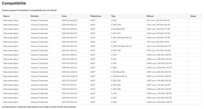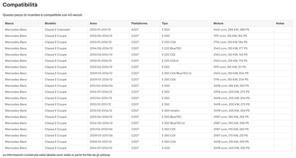 Coppia di Spazzole Tergicristalli per MERCEDES Classe E Coupe, Cabriolet da 01
