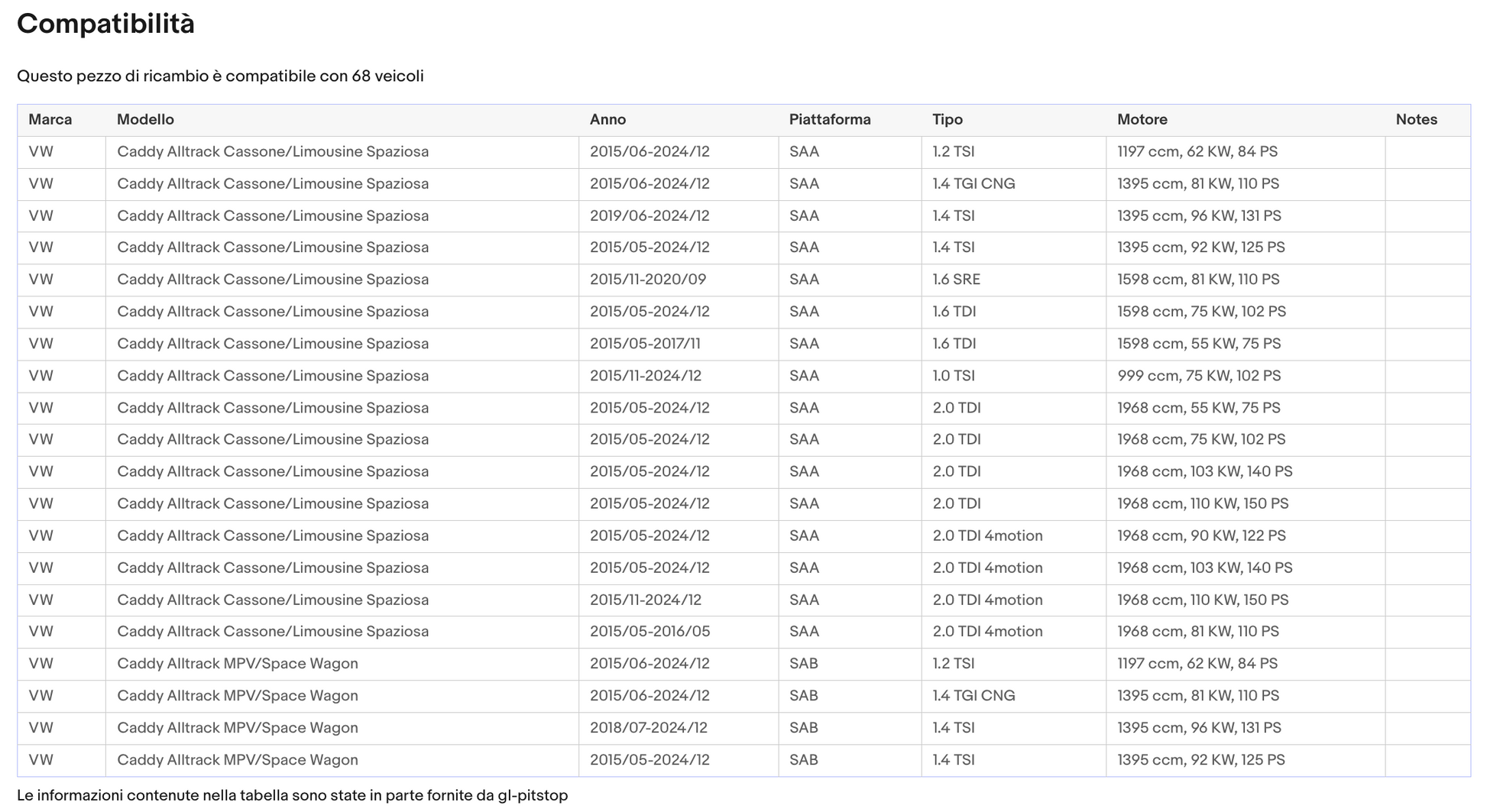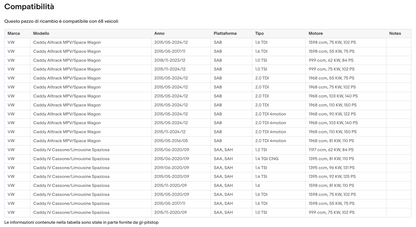 Coppia di Spazzole Tergicristalli compatibile con VOLKSWAGEN Caddy da 05/15 a 05/17