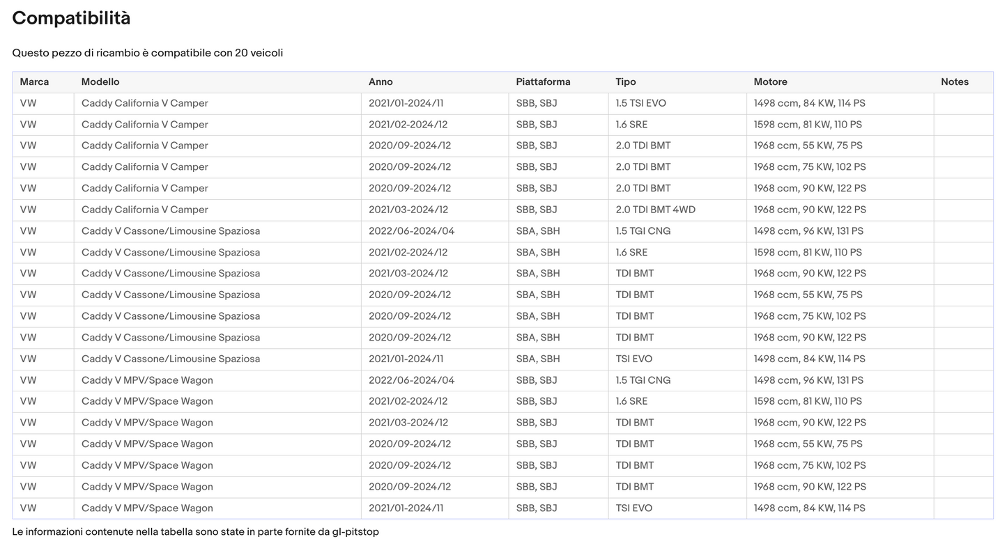 Coppia di Spazzole Tergicristalli compatibile con VOLKSWAGEN Caddy da 09/20