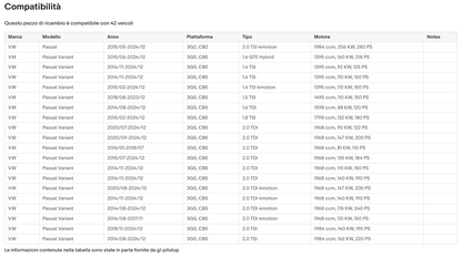 Qualità garantita e spedizione compresa nel prezzo. Sul nostro sito potrai trovare quello che cerchi ad un prezzo veramente competitivo. Tutti gli articoli in vendita sono sviluppati e testati per essere compatibili al 100% con la tua auto, senza problemi di montaggio; infatti, trattiamo solo articoli con montaggio veloce e che non richiedono modifiche. Se non trovi un articolo inviaci un messaggio ti risponderemo prontamente fornendo informazioni precise e mirate.