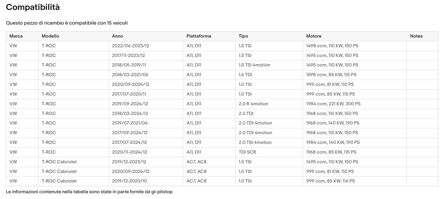 Coppia di Spazzole Tergicristalli compatibile con VOLKSWAGEN T-Roc da 07/17