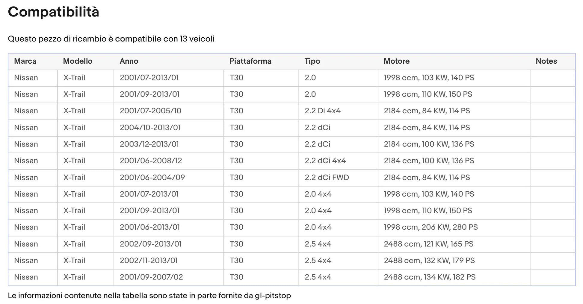 Coppia di molle per portellone auto Nissan X Trail (T30)